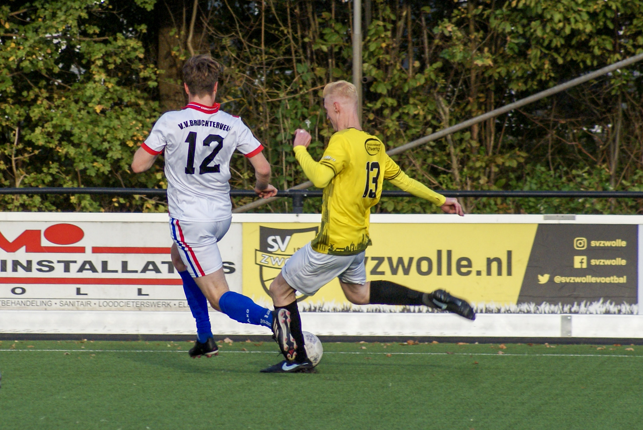 Even later kwam die voorsprong er alsnog. Sam Blom vond linksback Thijs Konkelaar, die de doelman met een fraai stiftje te slim af was. Na die geweldige beginfase van de tweede helft was het daarna vooral verdedigen. Bruchterveld kreeg een aantal fikse kansen, maar SV Zwolle verdedigde met man en macht en met behulp van een beetje geluk en een aantal reddingen van doelman Pansier, bleef de clean sheet lang intact.